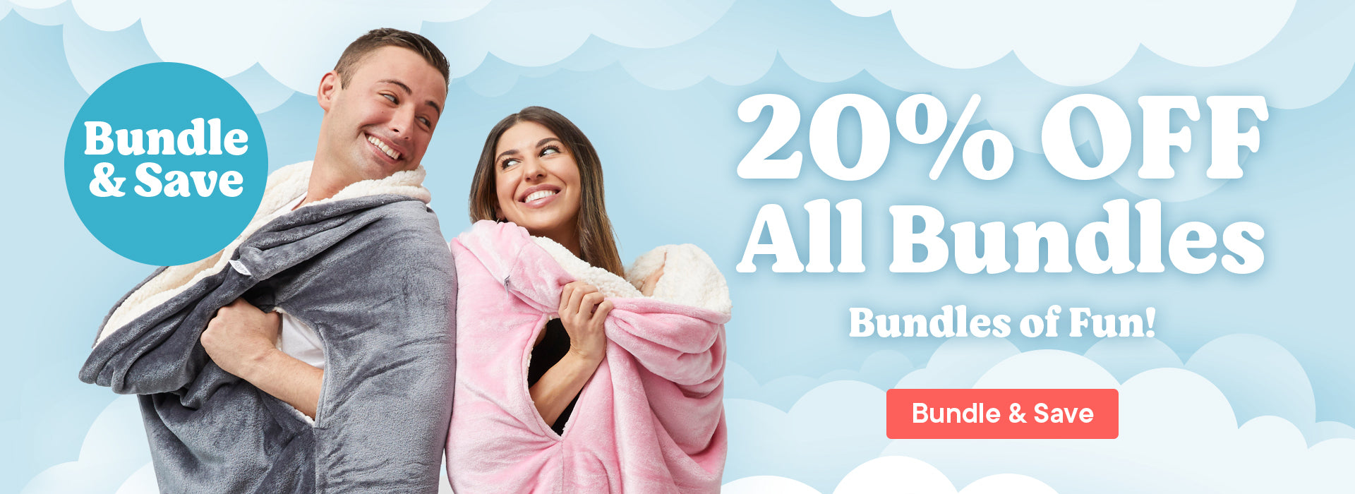 The Cosy Party Pack Get the crew together for a Cosy party! This mega party pack is the perfect option for friends and family.   The Cosy is the world’s first of its kind and is officially the biggest and snuggliest wearable blanket on the planet. Unlike other ‘wearable blankets’ that are more like a hoodie, The Cosy covers your whole body from head to toe.   Its huge one-size-fits-all design has a buttery soft sherpa fleece interior and flannel outer, making you feel like you’re being hugged by a cloud. Oh, and it’s cruelty free and vegan!